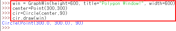 2) 창 크기 설정 및 원그리기