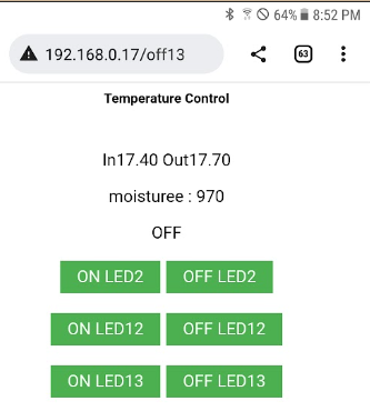 실내외 온도, 흙 수분, LED ON, OFF제어를 합니다.