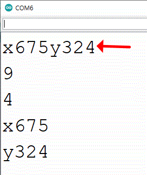 시리얼 통신에서 한문자씩 일렬로 들어오는 문자를 모아 엔터 명령을 주면 하나의 문자 스트링이 됩니다. 예) "x675y324"은 8자이며, 끝에 엔터 문자 포함하여 9자가 됩니다.