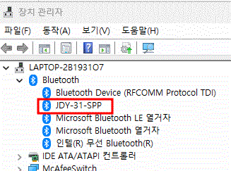 PC에서 부루투스를 켜고, 아두이노 보드를 페어링 합니다. 이때 PIN번호는 보통 1234입니다.