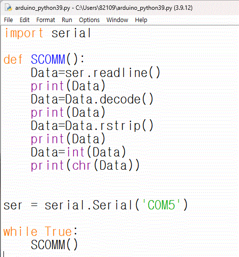 파이션 소스에 COM5 를 넣습니다.