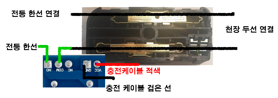 전등을 연결하는 천장에는 반드시 두선이 있고, 스위치를 동작에 의해서 220v On, Off 됩니다.