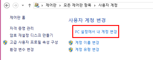 3. PC 설정에서 내 계정 변경을 클릭합니다.